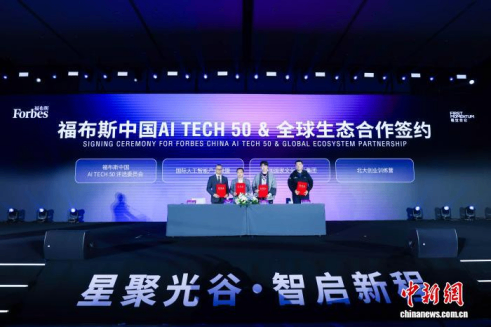 会上,嘉强智能激光鸿平台生态AI底座研发及产业化项目、科蓝鸿蒙AI智能网点项目等签约落地光谷,福布斯中国人工智能科技企业评选委员会与国际人工智能产业联盟、中国长城学会文化艺术专委会、迪拜自由贸易区(DMCC)、北大创业营等机构达成合作,进一步推动中国AI力量的产业协同。