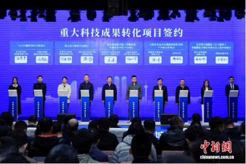 活动现场重大科技成果转化项目签约。成都市科学技术局供图